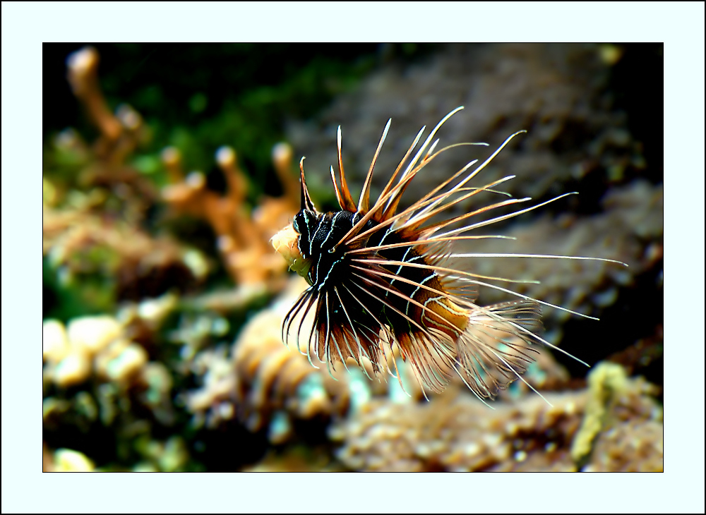 El pez león (Pterois antennata),[3] erróneamente llamado pez escorpión, es un pez de la familia Scorpaenidae. Su hábitat natural son las lagunas costeras y arrecifes del océano Índico tropical y el Pacífico occidental. Se refugia durante el día y caza camarones y cangrejos durante la noche. Crece un máximo de 20 cm.